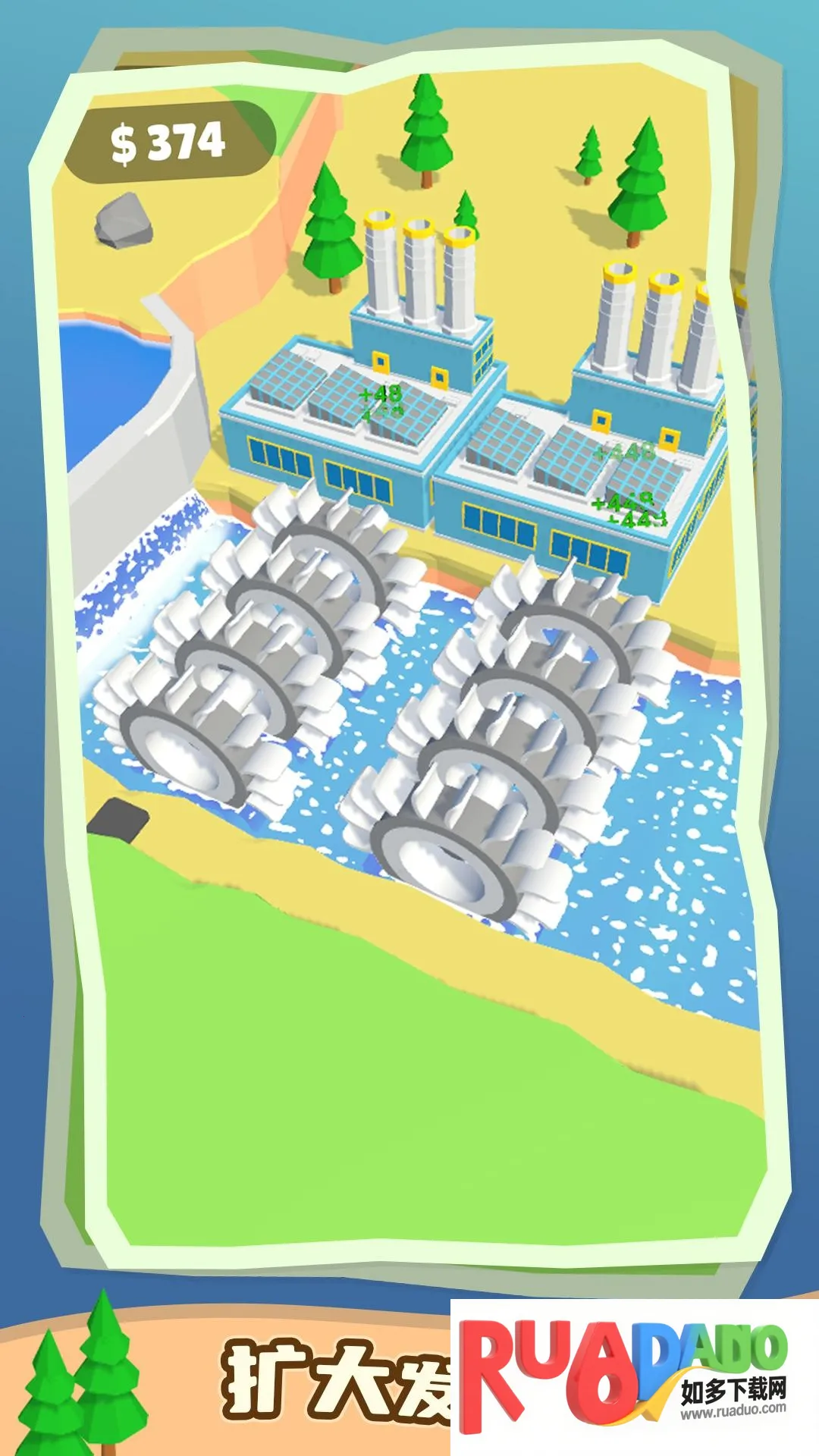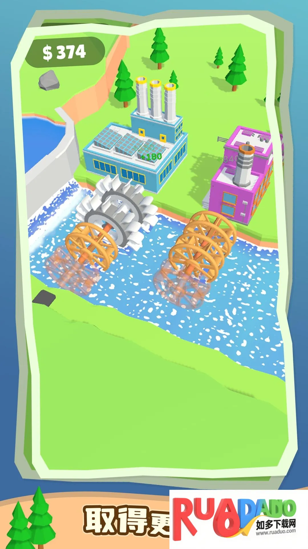 3、游戏操作简单易上手,采用现实中的水利发电原理,在站点逐步增加设备,当现有发电机产出足够电力就能解锁新发电机扩大规模。