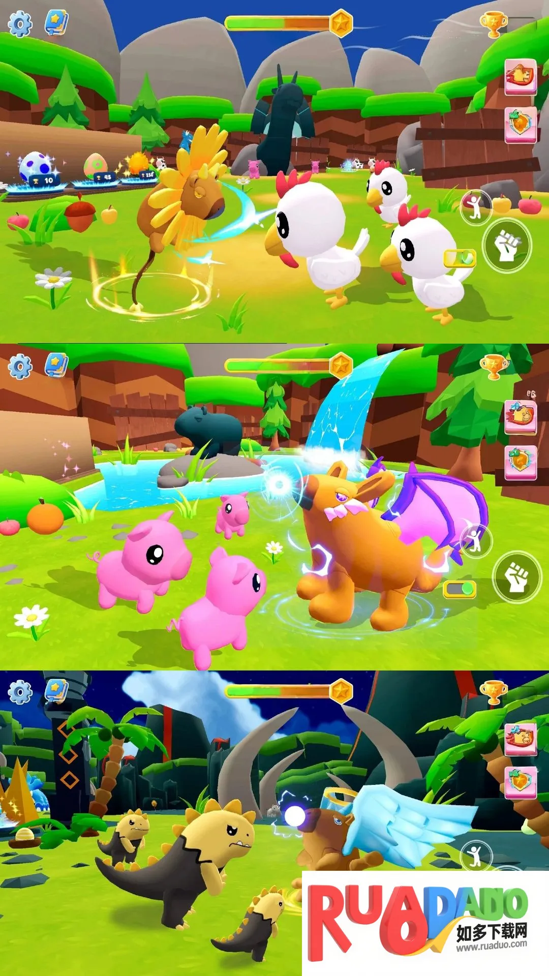 1、多样化场景:游戏以细腻3D建模呈现卡通渲染画面,有森林、火山、恐龙公园等多样化场景,为玩家打造沉浸式探索体验,这些场景也是玩家的开心乐园。