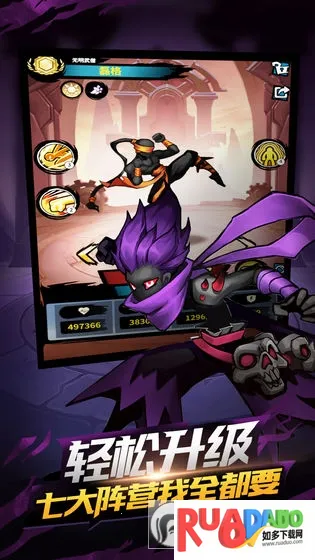 3、多样英雄养成:众多火柴人英雄立绘各异,技能不同,存在克制关系,可灵活搭配阵容,从前期到后期有多种英雄培养选择。