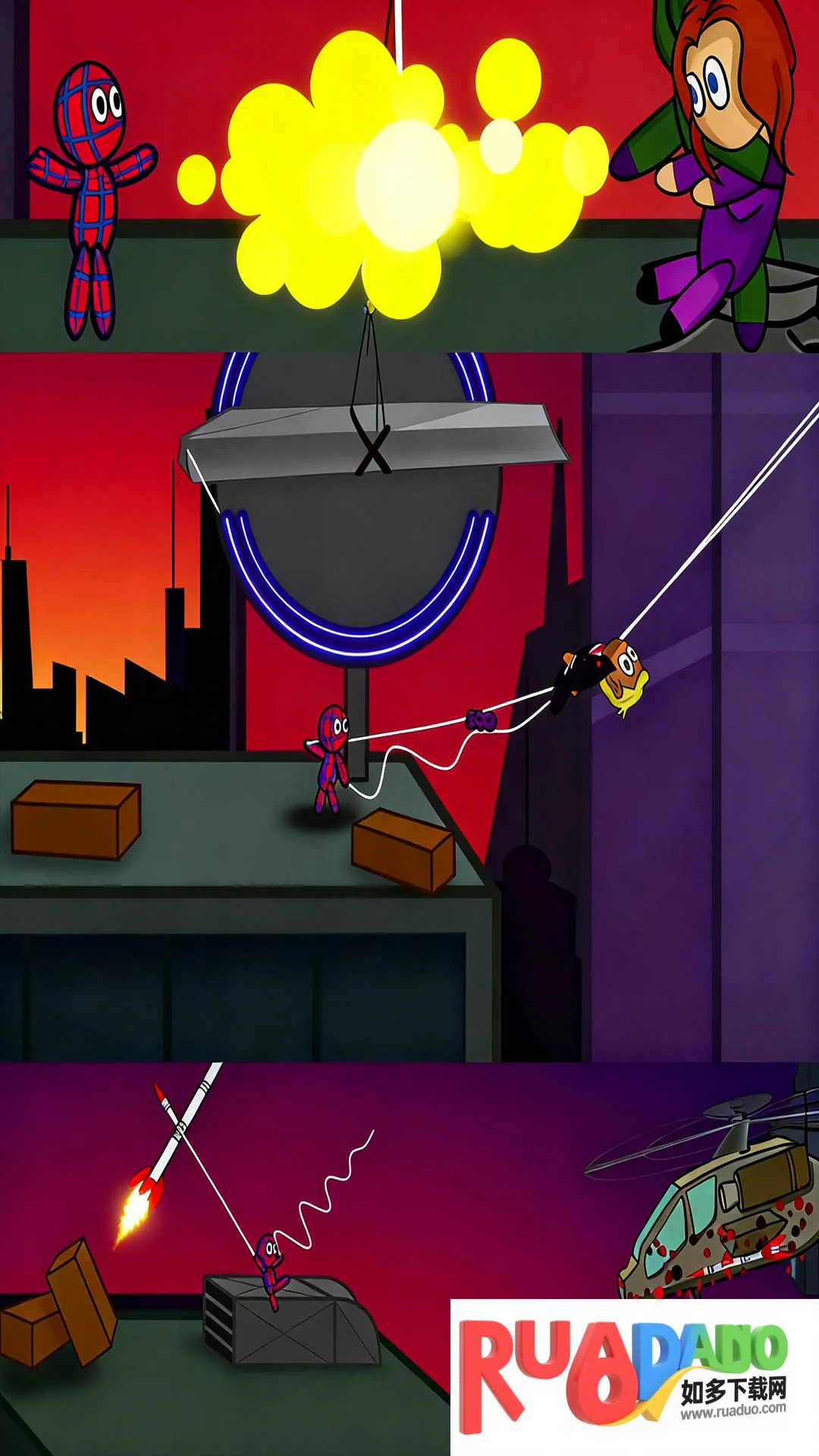 想知道战场极速逃生有啥攻略吗?在这款动作闯关游戏里,这些攻略能帮你轻松应对挑战。进入游戏,新手先选练习模式,熟悉蛛网发射、摆荡攀爬等基础操作。操控角色在城市穿梭时,留意上方提示图形判断反派距离,及时调整逃生路线。利用蛛网与场景互动,扯断栏杆攻击敌人、破坏障碍物。