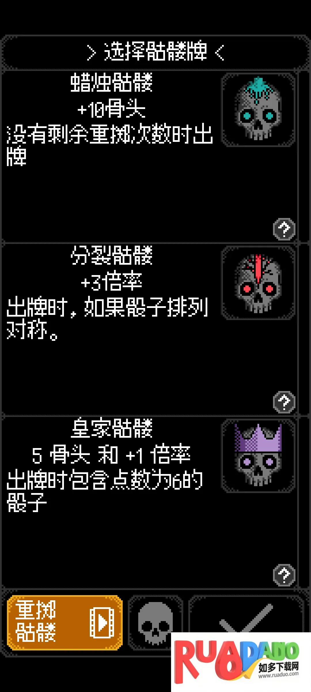 3、玩骰子组合:每组合尽量激活更多骷髅,通过重掷获得优势,强化成功组合以应对挑战。