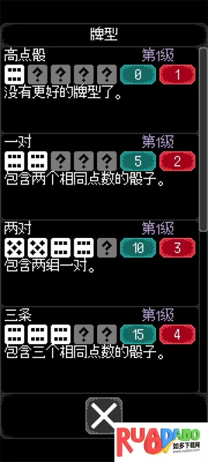 1、掷出骰子:可选择并重掷不满意的骰子,追求更有价值的组合,玩家要在保守与冒险间做出抉择。