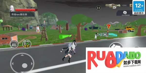 3、玩法简单,点击开始游戏,左边按钮移动,右边可奔跑、攻击和跳跃,右上角能切换武器,寻找NPC接任务即可。