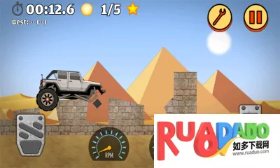 1. 游戏地图广阔,包含高难度悬崖、崎岖山路等复杂地形,关卡难度随进度逐步提升,挑战性极高。