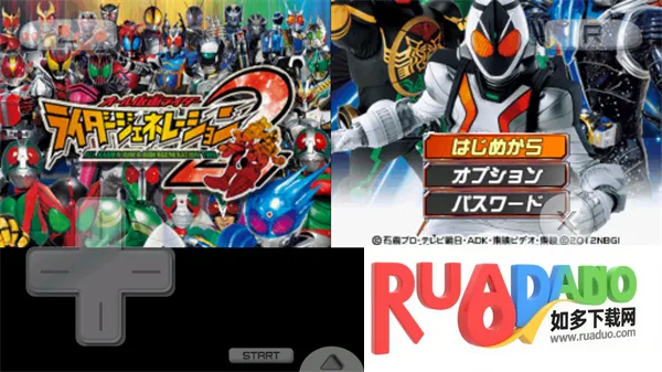 1、下载并安装好完全假面骑士骑士世代2后打开游戏,在第一个选项点击“A”虚拟按键。