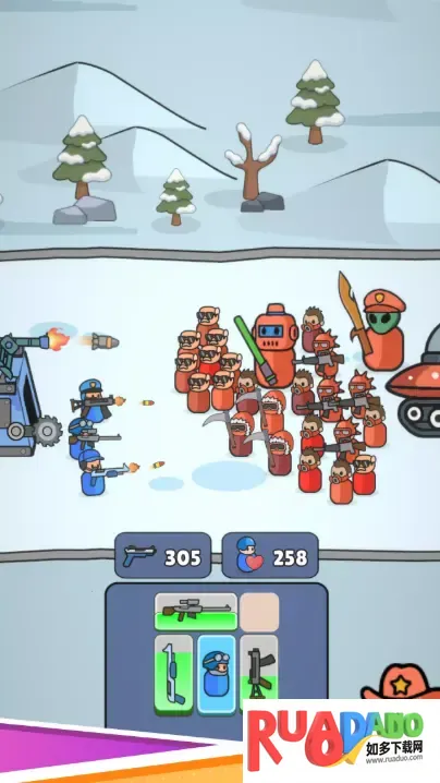 1、融合背包管理与自动战斗,玩家通过收纳构建军队,在有限网格放置士兵和武器打造阵型。