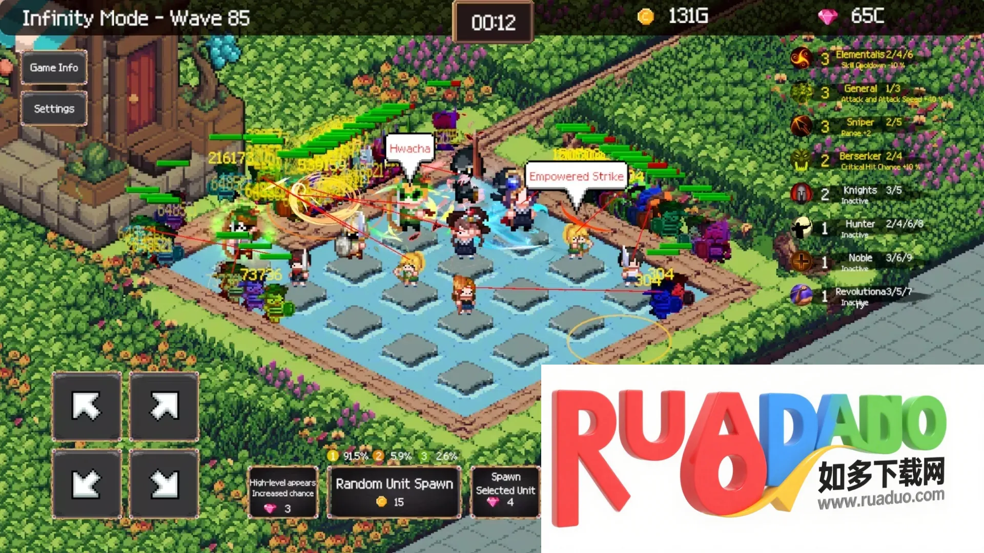 2、操作简单,是2048与塔防的完美融合,能合并可爱像素英雄抵御怪物,战斗失败可保留等级重新挑战。