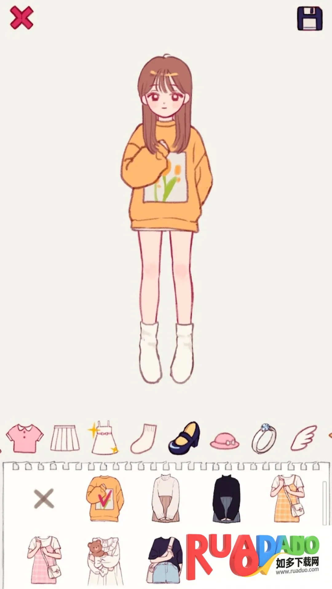 3. 能快速挑选喜欢的服装饰品给少女角色装扮。