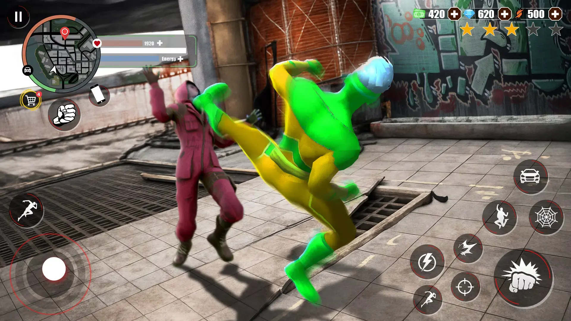 超级绳索英雄罪恶之城2025官方正版是一款动作竞技游戏,有多种玩法。操作简单,界面简洁3D。玩家能模拟绳索侠,利用地形飞跃绳索,救助市民,对抗敌人,还能展现多种超级英雄特质,体验开放冒险世界。