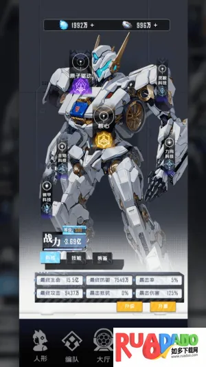 4、多样机甲可自由升级改造与搭配技能,还能通过抽卡获得喜欢的人形,形成个性化战斗风格。