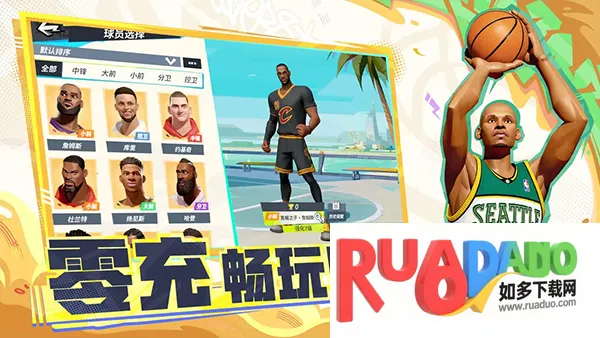 2、游戏角色选择丰富,每个角色都有独特属性,玩家可根据队员强度和技能连招组建梦之队,如控球后卫可选库里、SG选汤普森等,还能调整属性参数发挥强大实力。