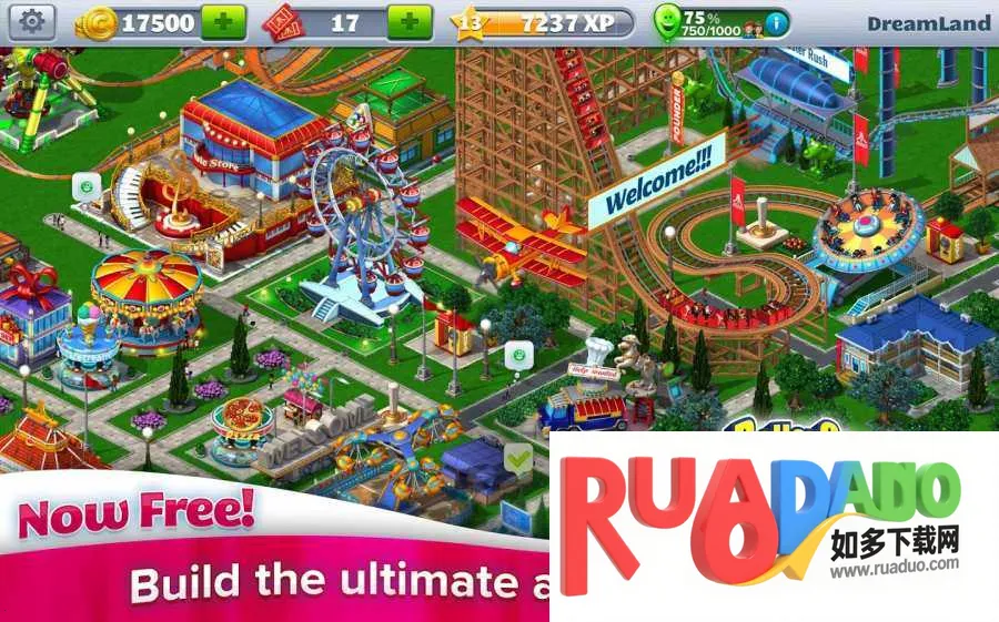 4、丰富物件选择:从各种宽度、风格和形状选择独特路径类型,还有许多不同类型的过山车、游乐设施、风景和商铺等物件扩充选择。
