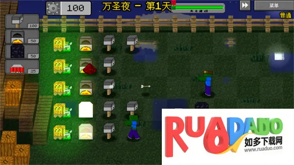 2、玩家扮演受僵尸袭击的村民,用我的世界可追溯原型的装置保卫村庄,阻止僵尸袭击。