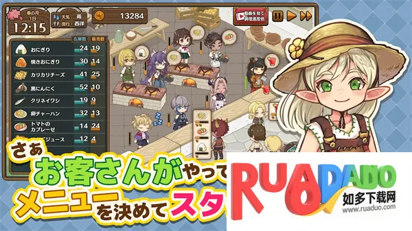 1、下载安装后可开启全新二次元日系风美食餐厅模拟经营之旅,成为被召唤到异世界的女高中生,和不同种族一起开料理店。
