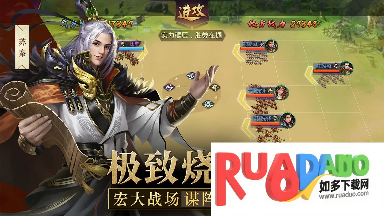 1、海量名士助力:作为纯正春秋战国题材手游,有李牧、蒙恬等骁勇良将,也有范雎、田忌等贤臣,助主公征战四方。